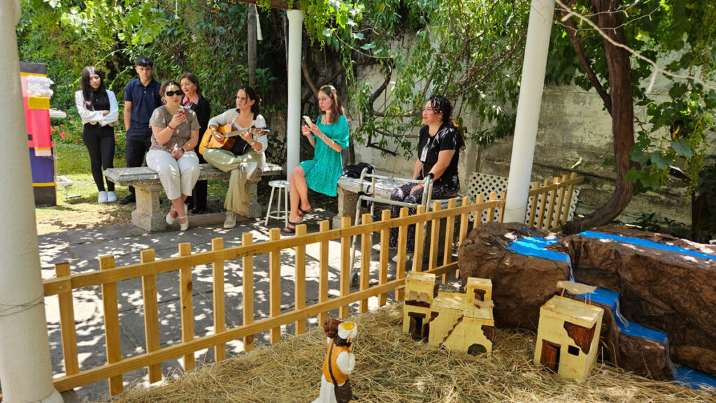 La celebración estuvo acompañada por los villancicos del Coro de la Pastoral de la Universidad de los Andes, quienes llegaron gracias a la gestión del Voluntariado Tribu. Sus voces llenaron de ambiente festivo y emotivo el recinto, creando un clima de paz y alegría.