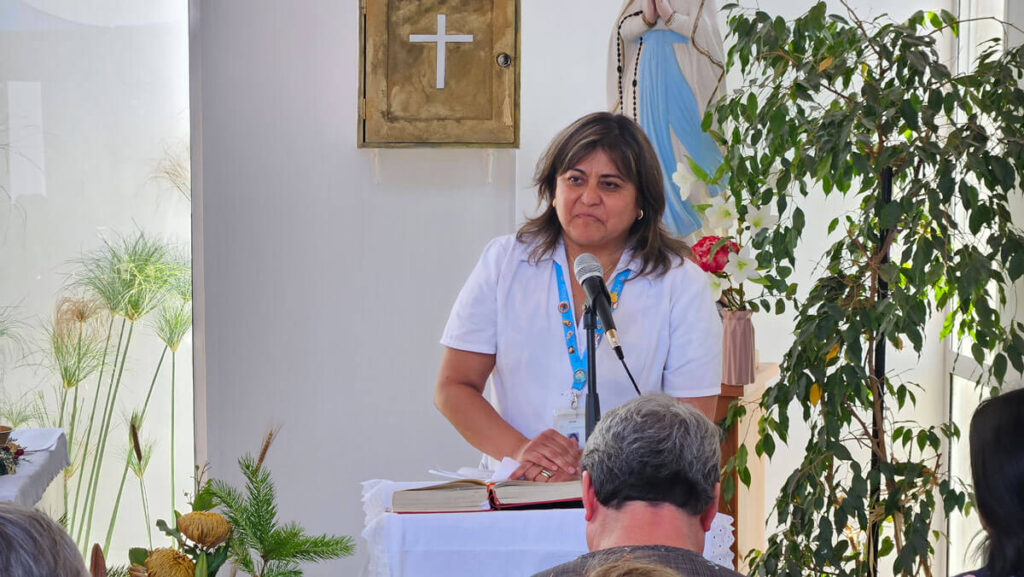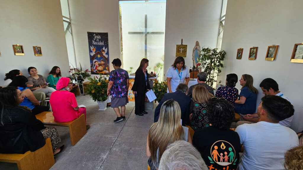 La jornada comenzó con las palabras de bienvenida de nuestra Directora, la Dra. Claudia Astudillo, quien destacó el compromiso de cada uno de los presentes durante este año: “Esta Eucaristía no es solo un acto de fe, sino un momento de pausa necesaria para agradecer. Agradecer el compromiso de nuestro equipo de salud y la confianza de quienes nos apoyan desde fuera (SSMSO y Hospital San Juan de Dios) para que este hospital siga siendo un lugar de rehabilitación… recordemos que el mejor regalo que podemos ofrecer es nuestra dedicación y excelencia hacia quienes más nos necesitan.”